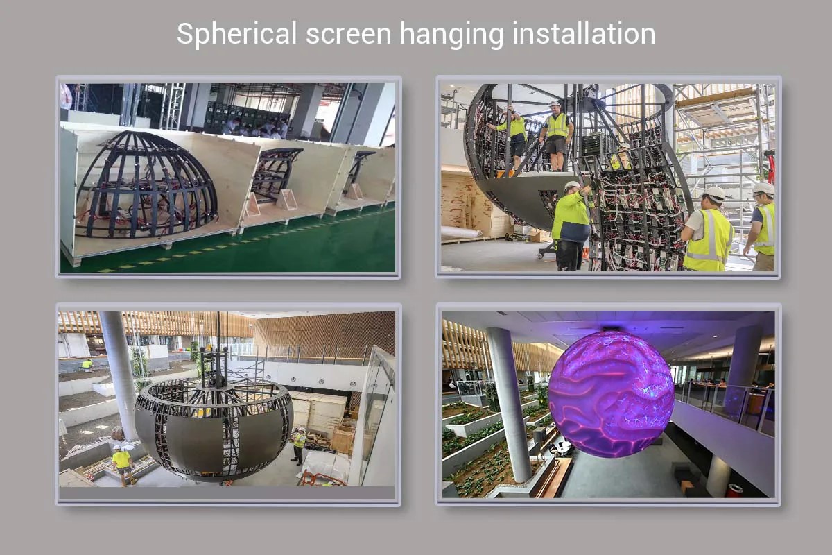 Available in various sizes and pixel pitches, the spherical display can be tailored to suit indoor or outdoor settings—from compact lobby installations to large-scale public landmarks.Easy Integration